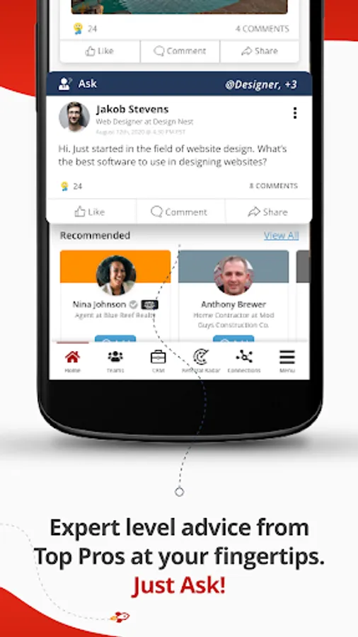 We’ve all been there. You have an important question you want answered by a specific profession. Through the Ask the Pro feature, you’ll gain access to thousands of professionals looking to answer your questions. Simply post your question, pick the profession you want answers from, and choose the geolocation you want to target. Within minutes, you’ll start receiving answers from other professionals. It’s that easy.