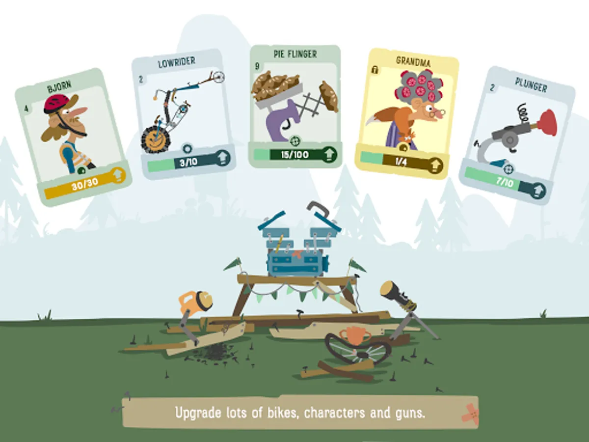 Bike and shoot your way through the crazy tracks at Big Wheelie's. Collect cards upgrade and beat your friends.