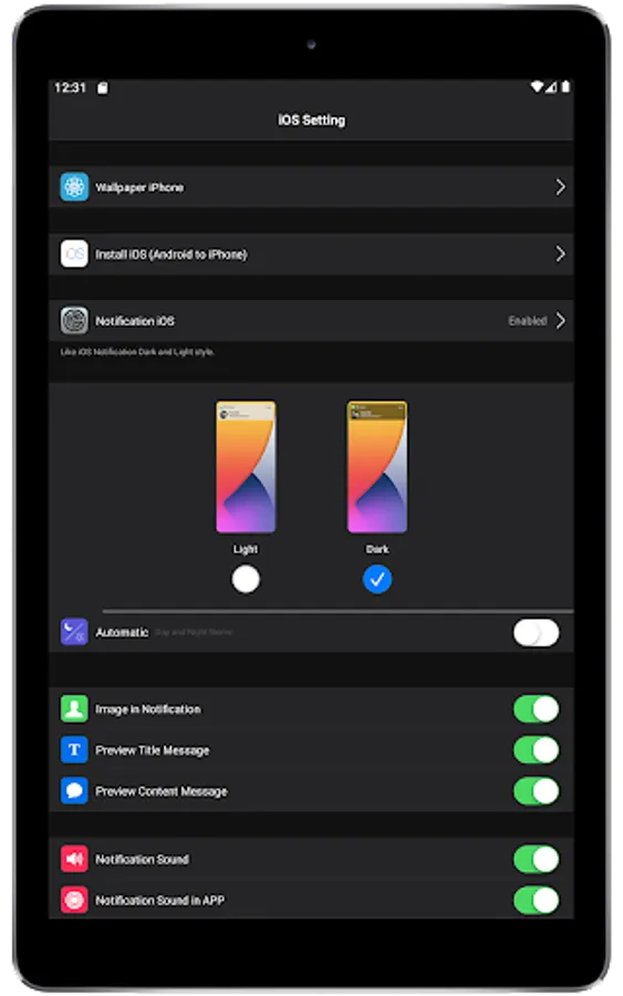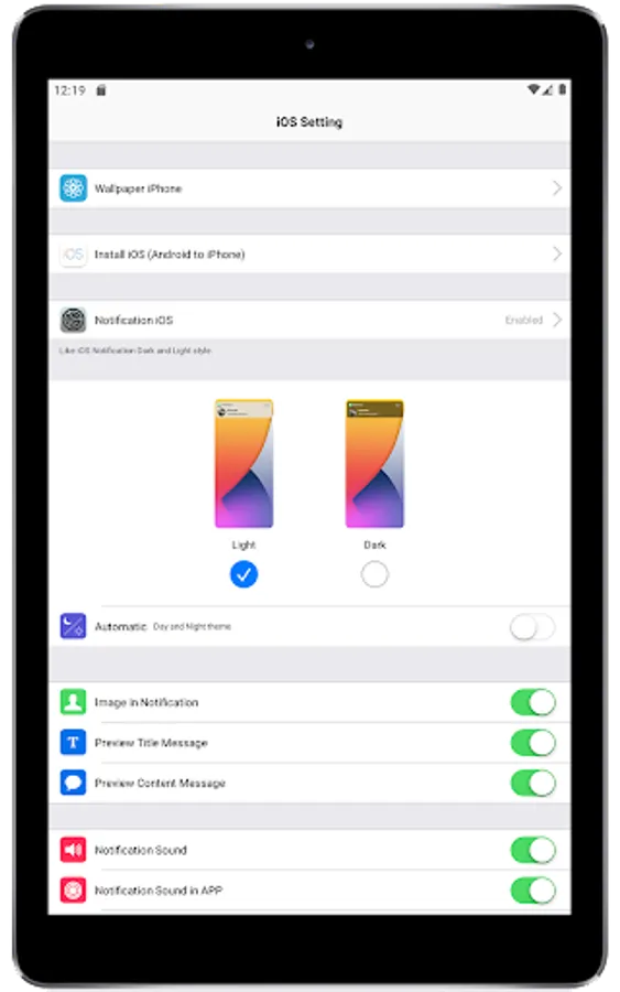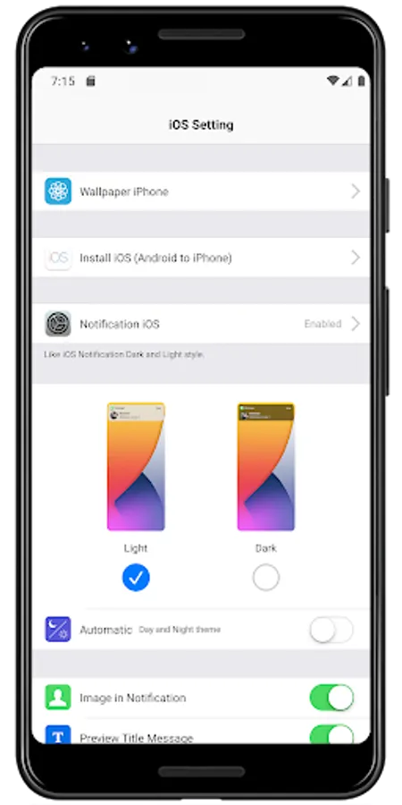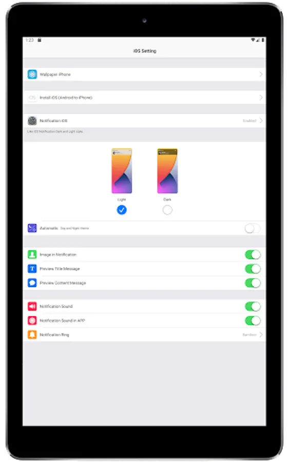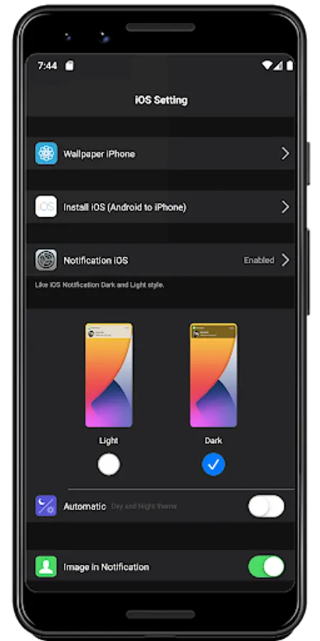 Notification iOS theme, will receive your notification similar to iPhone and iOS operating systems with dark mode, light mode and automatic detect day and night option.
