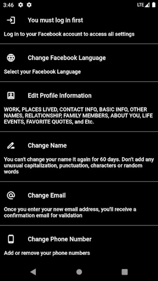 Launcher For Account Settings on Facebook is helps you to find all Facebook settings easily.