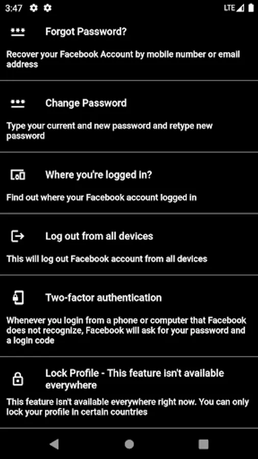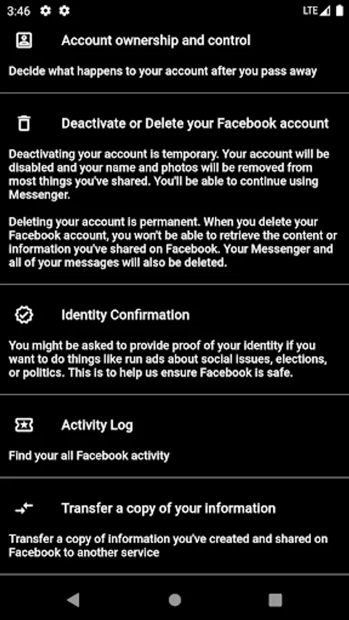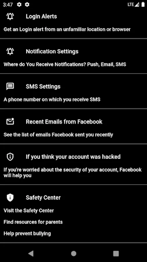 You can access security, privacy, activity and other settings from Facebook.