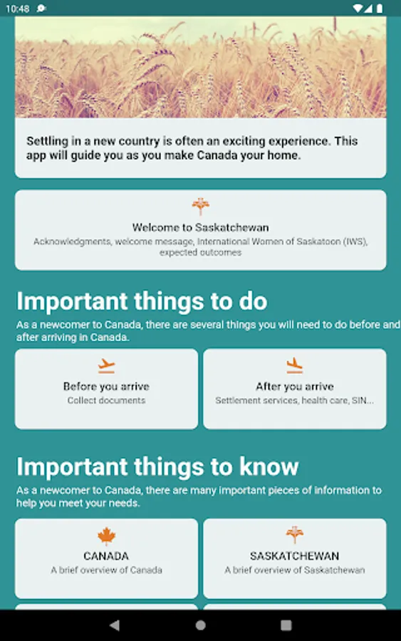 Welcome to Saskatchewan is a settlement mobile app designed to help immigrants and refugees to achieve a smooth and successful transition into their life in Canada.