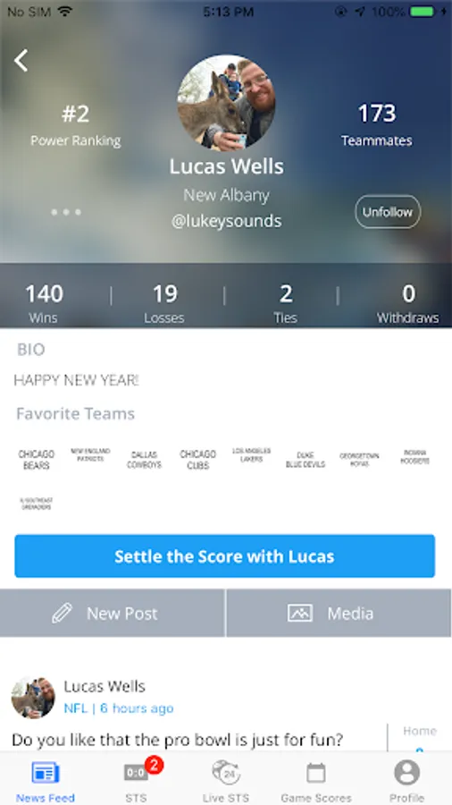 Settle The Score is a sports social media network that allows users to discuss sporting events, athletes, and outcomes with users across the world. Start “Scores” and climb the power rankings if your “Score” wins. Find teammates, engage in the universe of sports, view trending sports content, and engage in discussion with live sporting events.