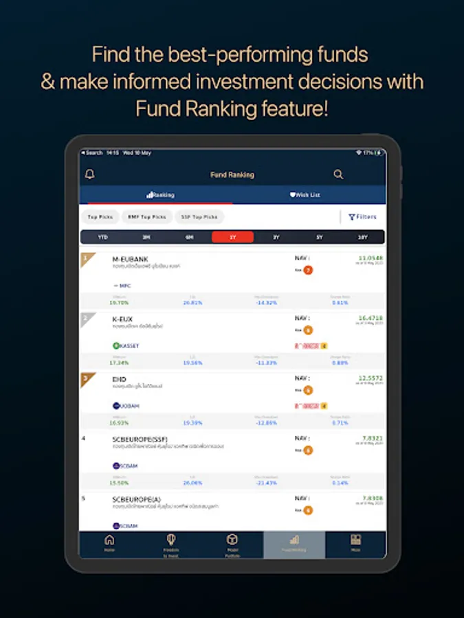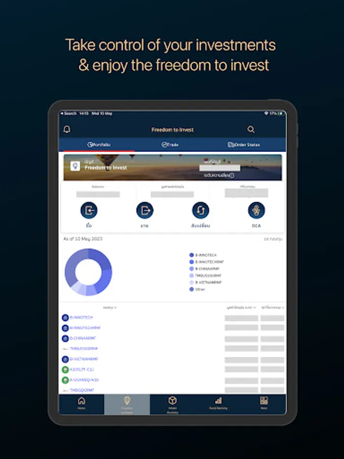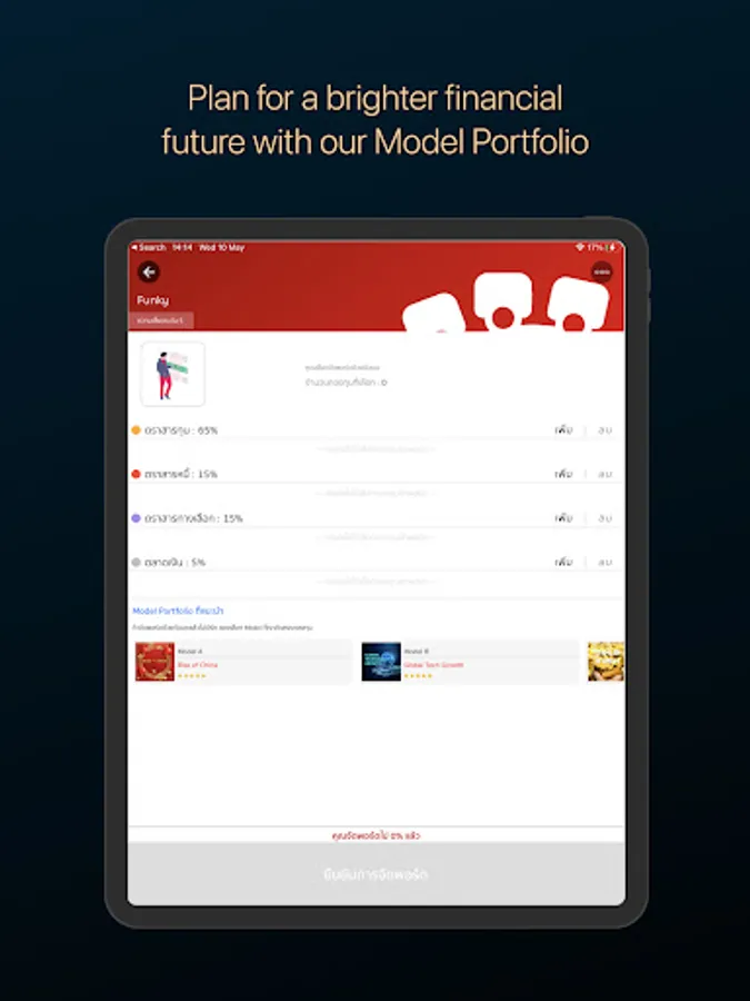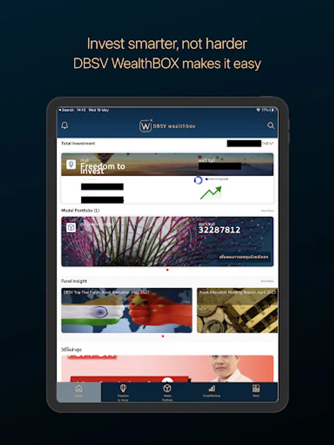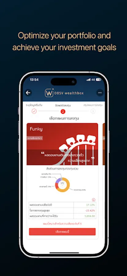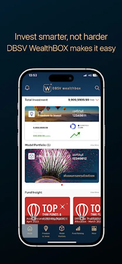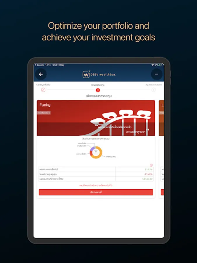 This version only allows to invest in mutual funds. For the next version, DBSV WealthBOX will be able to invest in the different asset classes such as Thai and foreign stocks.
