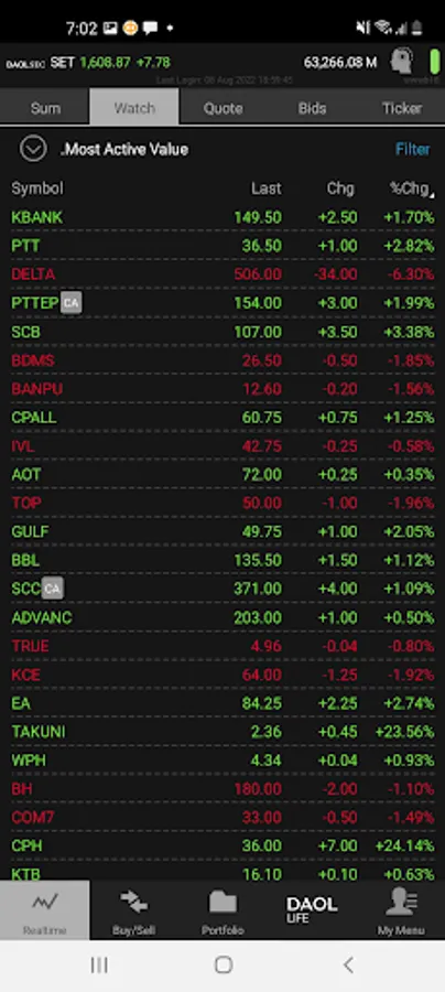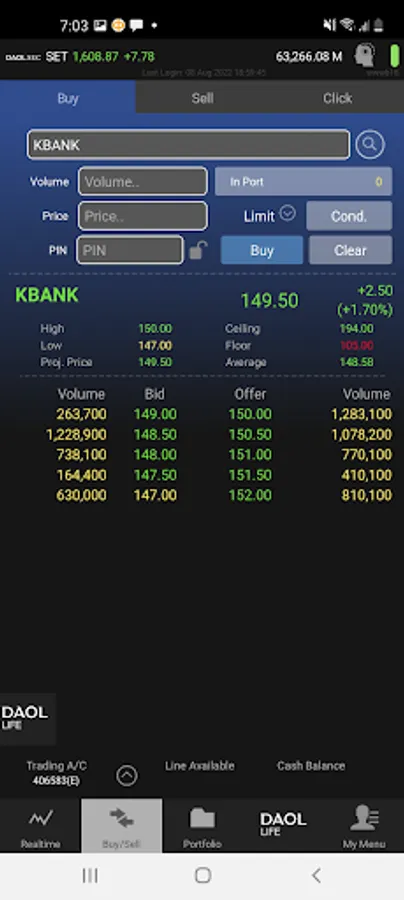 DAOL SEC Trade for Android is the multi-market internet trading system designed for Android device that allows you to trade both equity and derivatives products with real-time market information. With user-friendly interface, you can easily track portfolio movement, real-time quotes, price charts and news while placing orders at your fingertips. DAOL SEC Trade for Android gives you not only ease-of-use but also speed and real-time market information so that you can execute buy/sell equities or derivatives from your Android devices from anywhere at any time. As well, the DAOL SEC Trade for Android is optimized for future services from DAOL SECURITIES (THAILAND) PUBLIC COMPANY LIMITED.