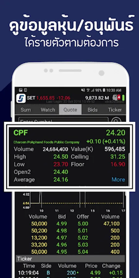 Realtime - For information on stock markets and derivatives, create favorite lists. See top ranking. See basic and statistical information. Offer information, offer for sale And the movement of trading of stocks or derivatives