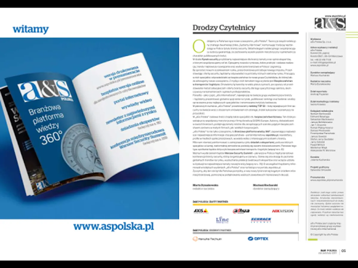 a & s Poland is a bimonthly security market. The journal publishes editorials interesting, interesting reports, Polish and foreign case studies, rankings of companies and industry, market trends analysis, expert comments, advice of professionals, interviews with key industry personalities.