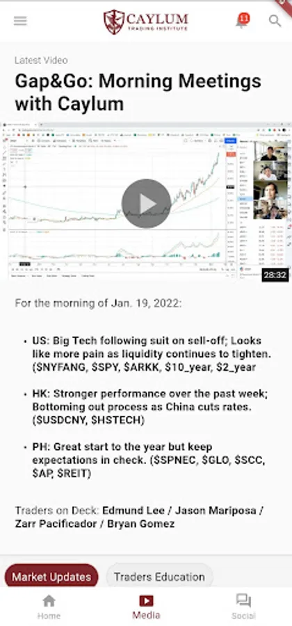 - Browse through our social feed where you can post market-related questions and receive responses from our senior equity analysts