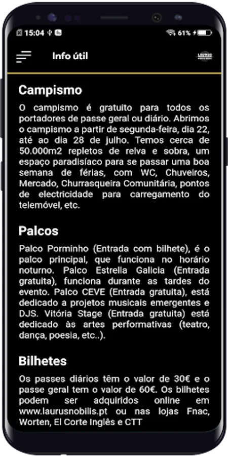 With the Laurus Nobilis App, you always have at hand all concert times, info about the bands and useful information about the festival