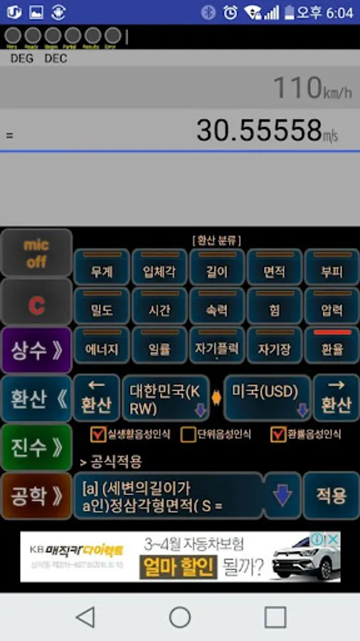 -단위변환(미터퍼세크↔킬로미터퍼아워),