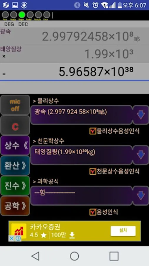 환전, 단위변환, 퍼센트, 부가세, 통계, 수학공식도 말로 계산가능합니다.