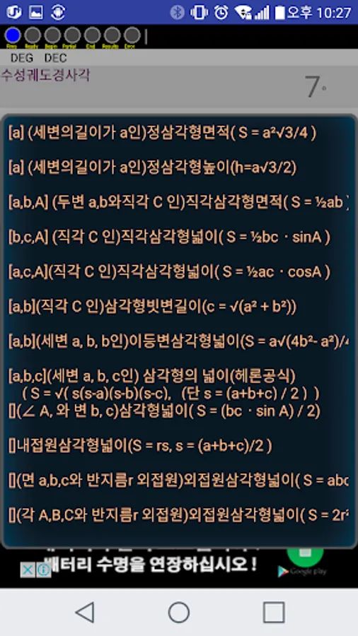 -공식에의한 계산( 삼각형, 사각형 등의 면적, 사면체, 육면체, 원뿔 등 부피, 면적등, 이차방정식, 삼차방정식, 역행렬)