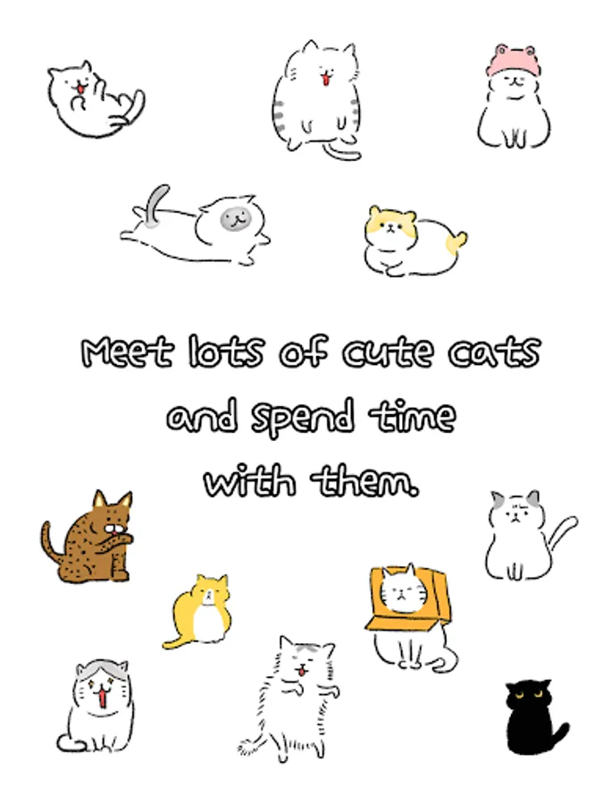 -Meet the various cats that are pretty and spend together. Release your favorite cats and give water and clean the toilet. And whenever you can touch it, please start with healed experience.