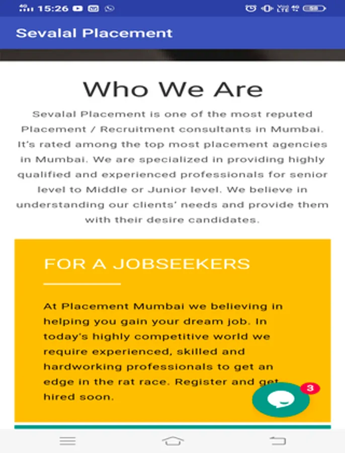 At Placement Mumbai we believing in helping you gain your dream job. In today's highly competitive world we require experienced, skilled and hardworking professionals to get an edge in the rat race. Register and get hired soon.