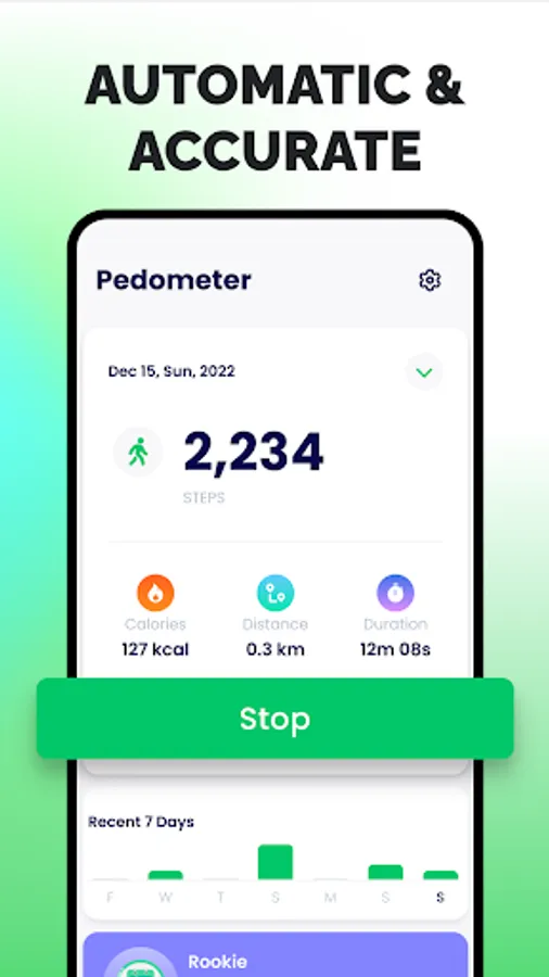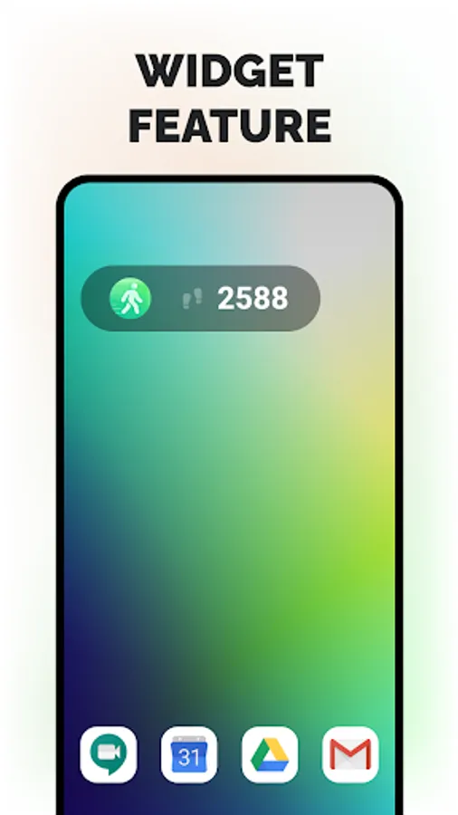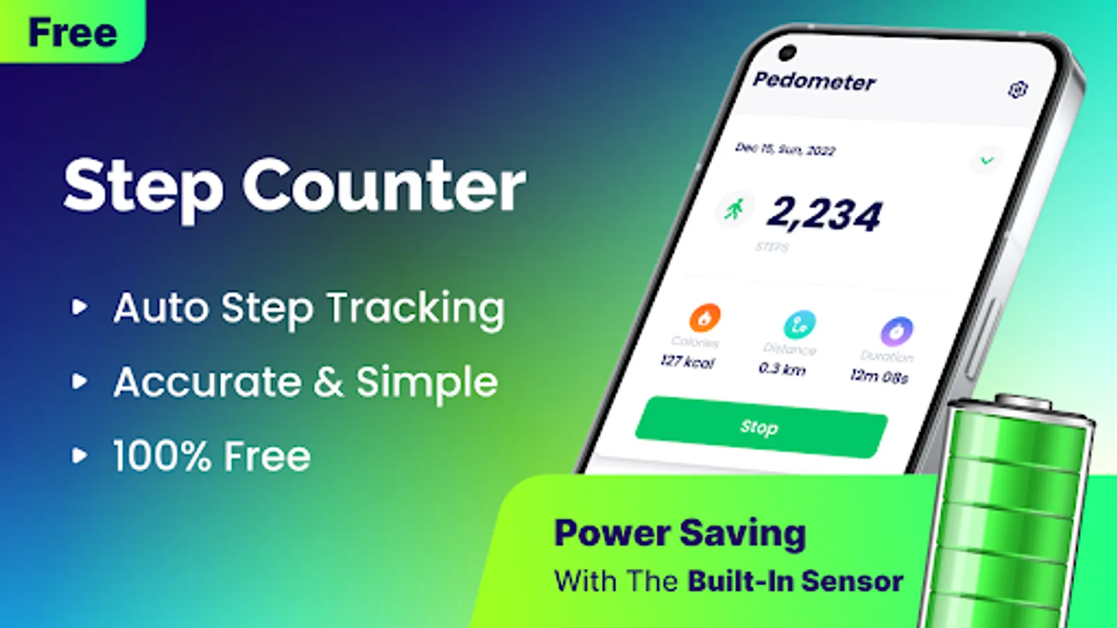 This pedometer uses the built-in sensor and Google Fitness to count your steps. It also tracks burned calories, walking distance and time. All this information will be clearly displayed in charts.