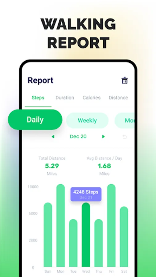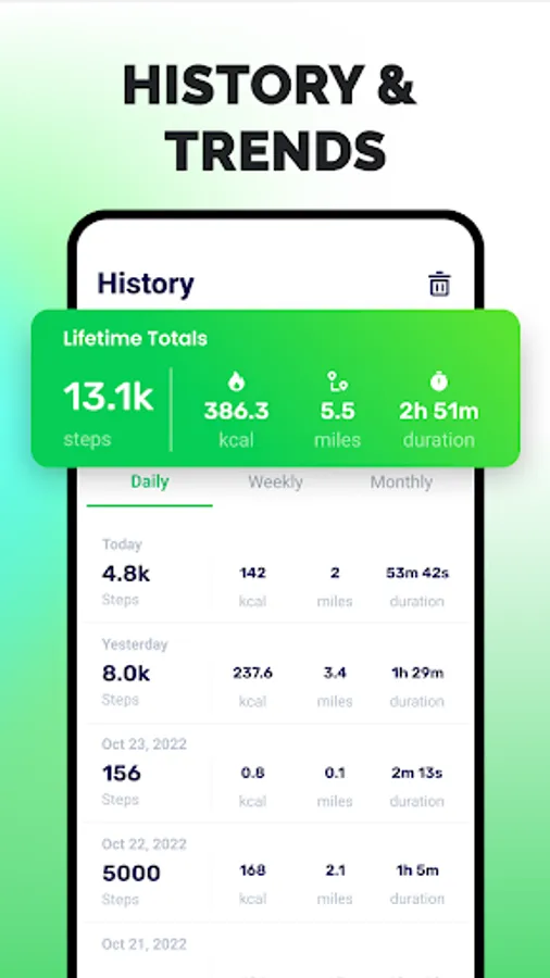 Tap the start button to start counting your steps. It can auto-record your steps even your screen is locked.