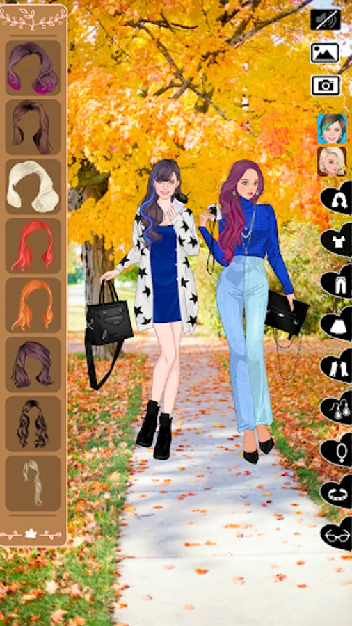 Friends will be friends no matter what and they will not quarrel because of similar dress up – they have separate sets of clothes, so both girls will be awesome during this autumn. Take a chance with Sevelina to dress up to enjoy the varieties of look of these friends and they will spend this autumn as fashion ladies with good taste in hairstyle and jewelry sets. Lovely shoes are the best part of these dressup, making them both happy this autumn.