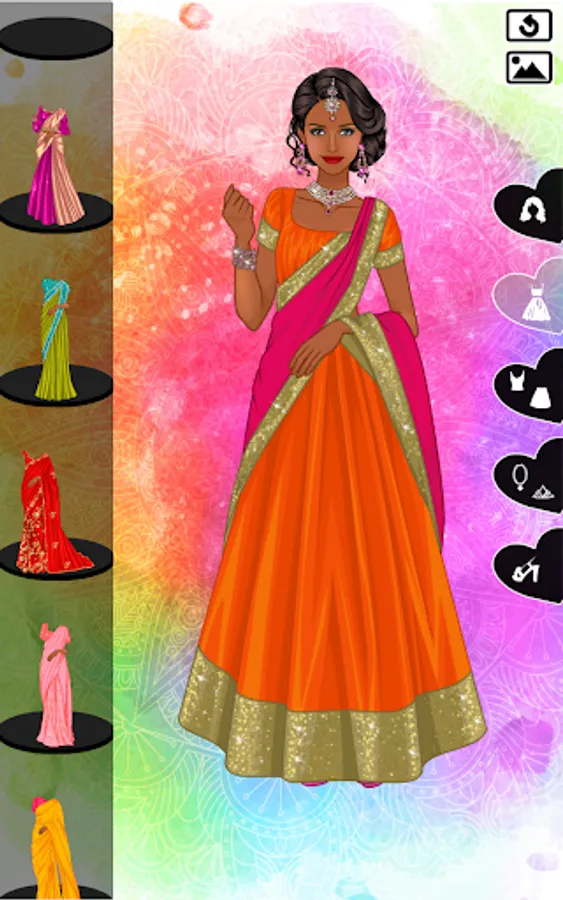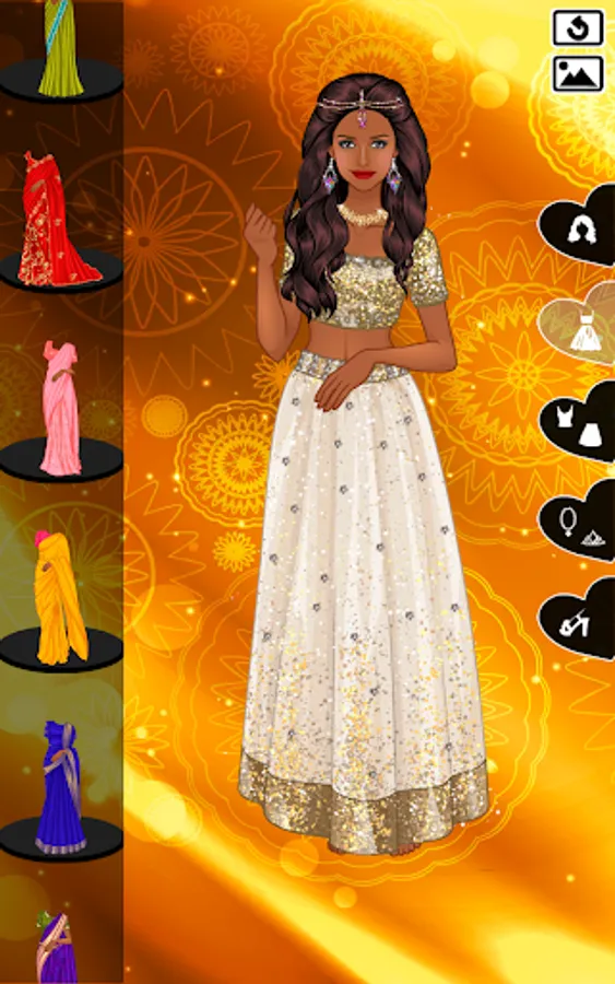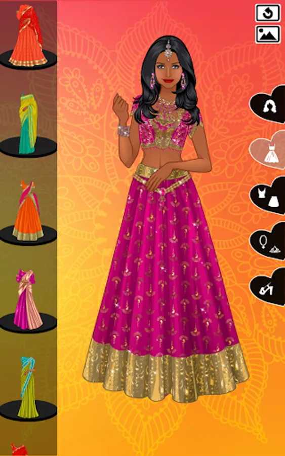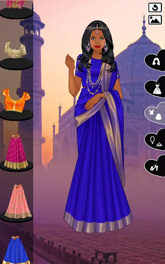 Meet this gorgeous Indian princess! She nice, young, posh and marvelous. Just look a her hair. As most Indian girls hair looks awesome, on the top of it she is slim and fit with a nice skin color. In other words she is real princess and perfect dressup is the duty for her. It shouldn't be ordinary dressup, it should be the proper Indian dressup with sari, long skirts and insanely colorful blues. You can put the shoes on, but don’t bother with it, anyway it can’t be seen under sari and long skirt. Don’t forget about necklace and the earrings, this is the must have attribute of any Indian girl and definitely for the princess.