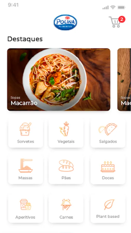 Polina Alimentos, now via frozen food distribution application, such as: ice cream, breads, vegetables and meats.