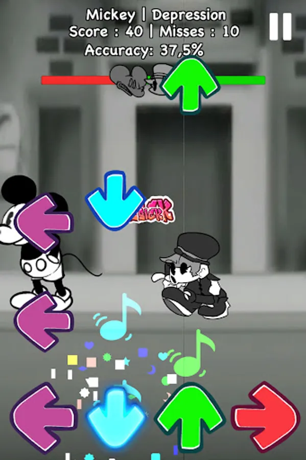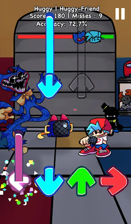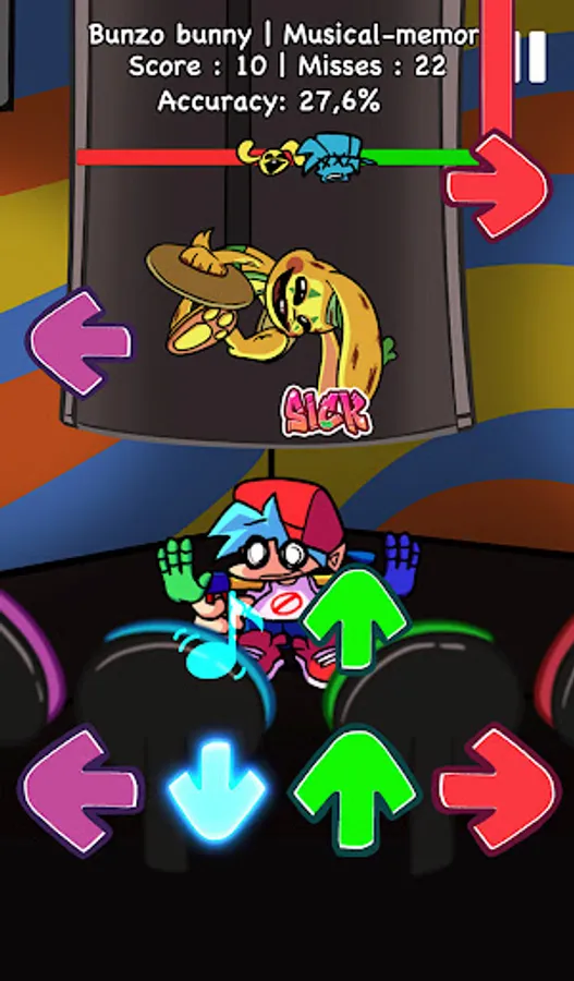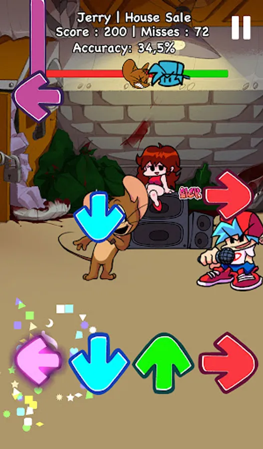 He is trying to kiss his GF, because that's what he want most in the world, but her evil father won't let him get close to her. GF's father is a former rock star, so the only way to get to his heart and get his girlfriend back is through the power of music - try to play all the musical notes at the right time to earn enough points and win the game! However BF only has small chance while having battle alone with her Dad, let's join BF Crew and help him get his girl!