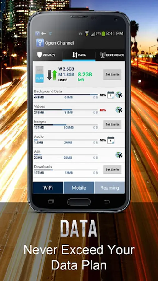 Open Channel provides unique views and controls to your data usage for each application and type of data, including videos and images. Open Channel helps you understand how you use mobile data and control the usage. Use the “Set Data Plan” feature to track your data usage and the “Set Limits” feature to avoid overage charges.