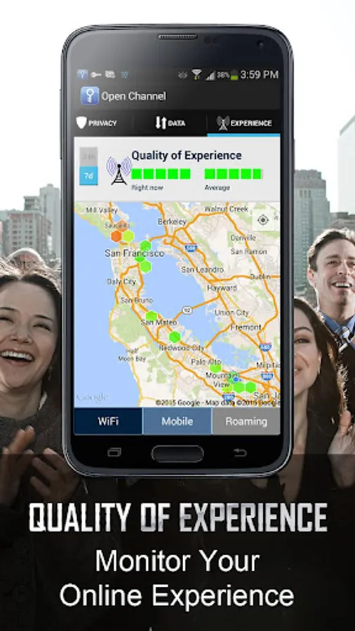 Open Channel monitors the quality of your online experience and reports it back to you on a map to highlight where your experience is good and where it is not. As we gather data from more users, you will be able to compare your experience to others.