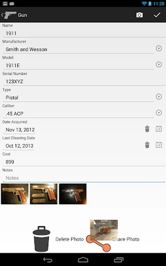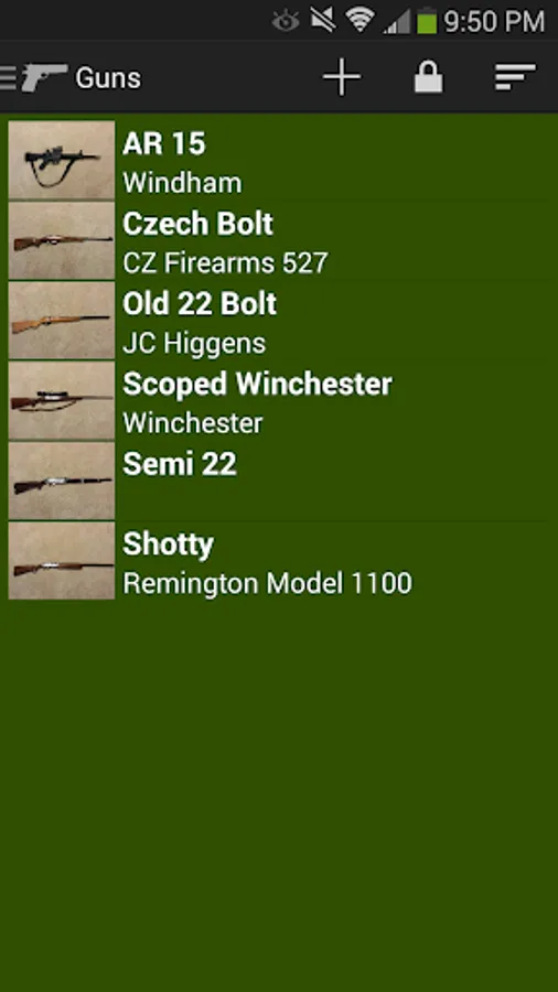• Store your gun inventory data, ammunition stock, and other firearm information