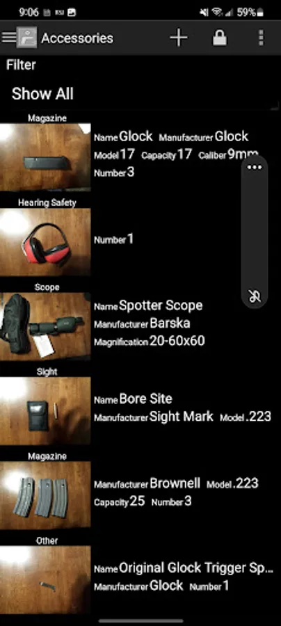 • Keep track of all your accessories. Even associate certain accessories to a gun.