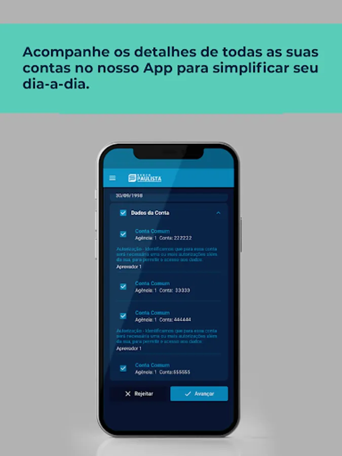Exclusive application to authorize the sharing of your data with other banks - Open Finance with security and practicality.