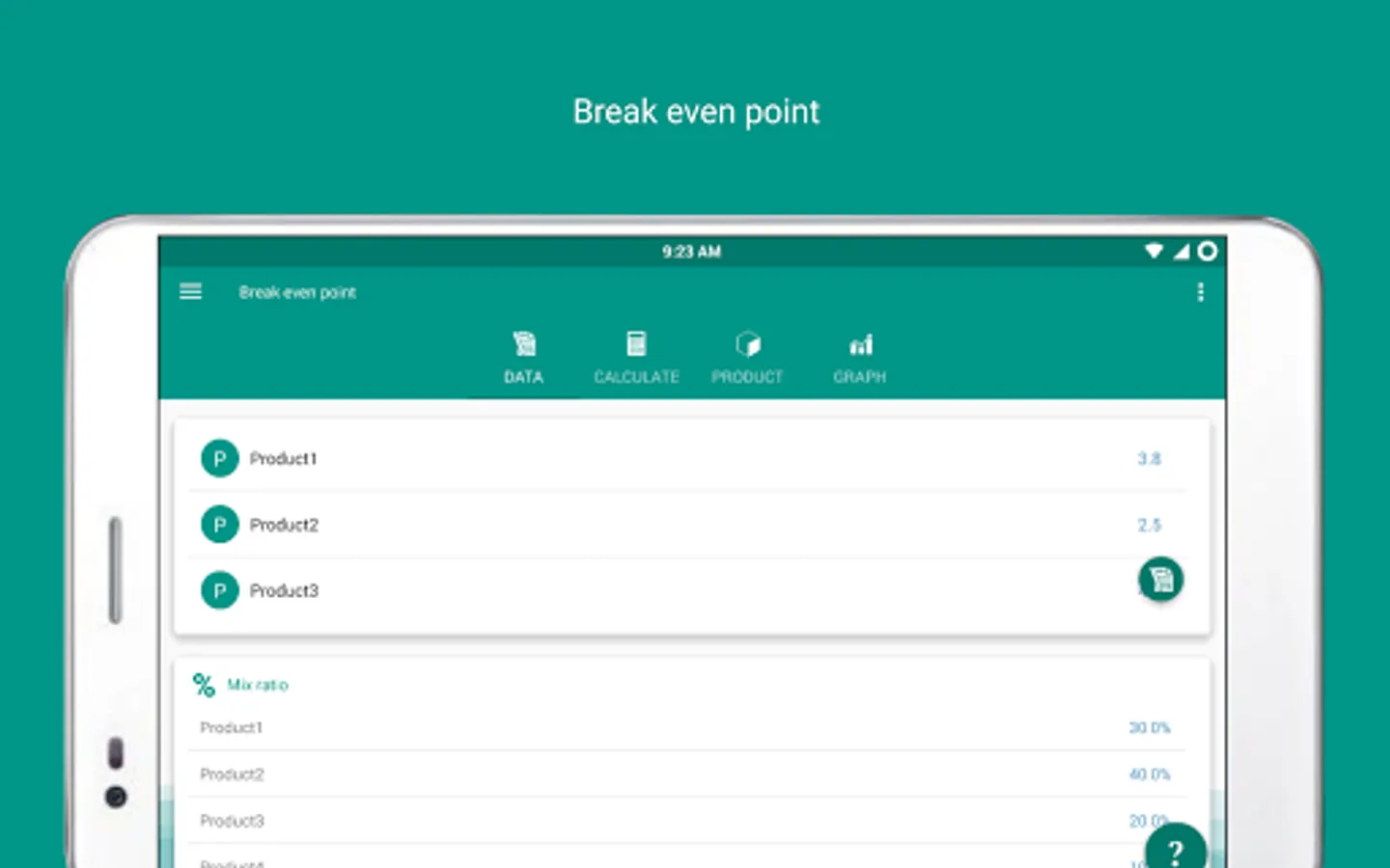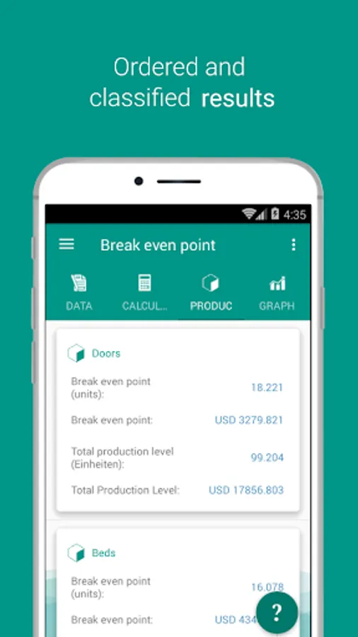 5) Calculation of the multi-product break even point in monetary units and quantity.