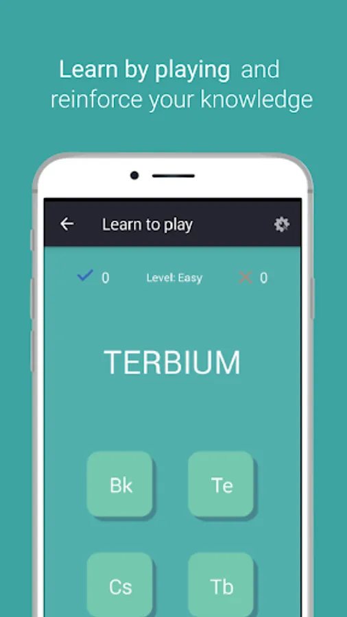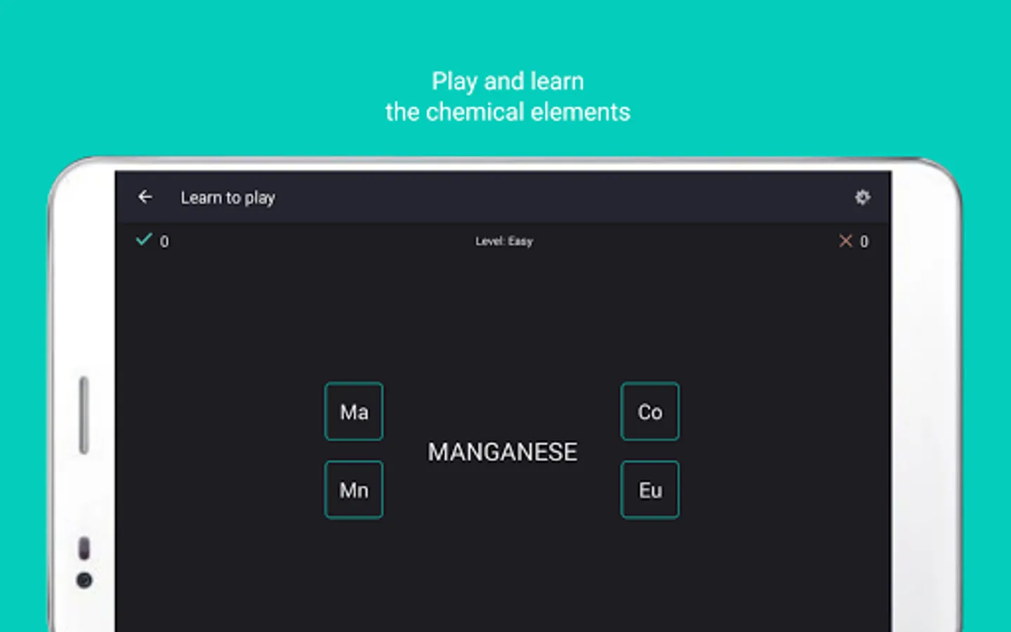 4) Learn by playing the chemical elements at the easy, medium and difficult level.