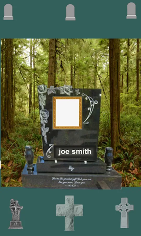 Edit tombstone add text on the grave stone with tombstone photo editor. Gravestone maker renders you the extensive headstone designs, select your favorite tombstone frames and create the real tombstone photos. Tombstone photo editor provides you the features to select your desired photo from gallery and create the memorial headstone with tombstone photo editor. Add RIP text or other text with your own choice on the tombstone photo. Remember the people who has died recently or say r.i.p to the people who died with tombstone photo maker. Amaze your friends by creating their tombstone, add birth date and death date with RIP app. Gravestone photo editor provides you the variety of headstone photo frames.