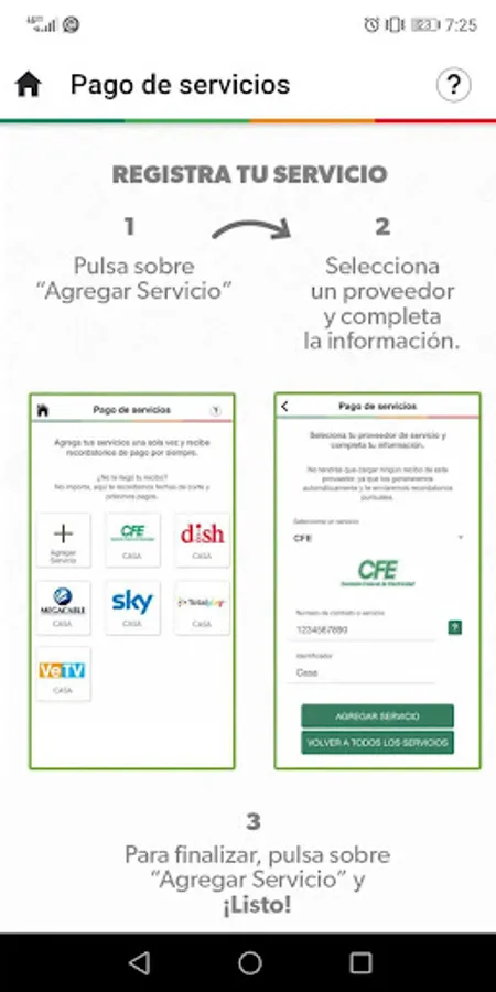 + Charge your service (CFE, Megacable, SKY, VeTV, others) once and receive payment reminders, new debts and due dates and pay for your service in store by scanning the QR code of your service. Soon more services!