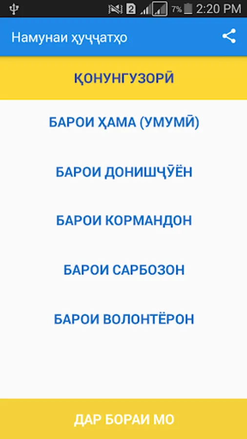 Barnomai "Namunai ҷҷuҷҷatҳo" yakumin barnomae mebble horse, ki gift he namunai arizaҳ, zabonhatҳo, darhostҳo, baenotҳo, maktubҳo, elonҳo wa ғaira ҷoigir karda sudaand.