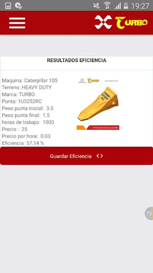 Application that allows calculating the efficiency of the tips used in heavy machinery, entering parameters such as Horometer, Initial weight, Final weight and price of the tip, if the model is TURBO, the application will load the parameters automatically, save the efficiencies to know when A tip was more profitable, time vs price.