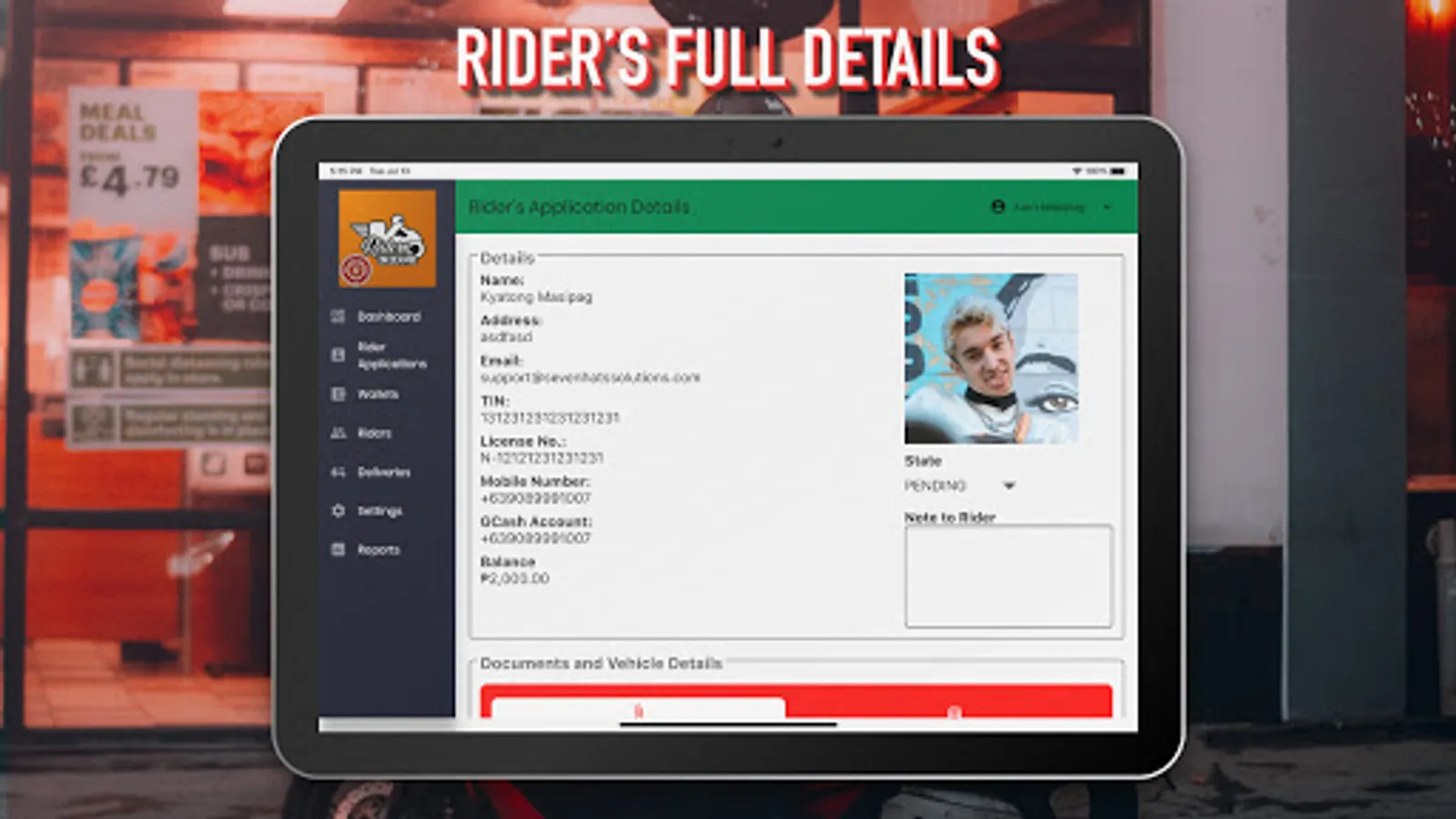 - Approve or Reject Rider Application