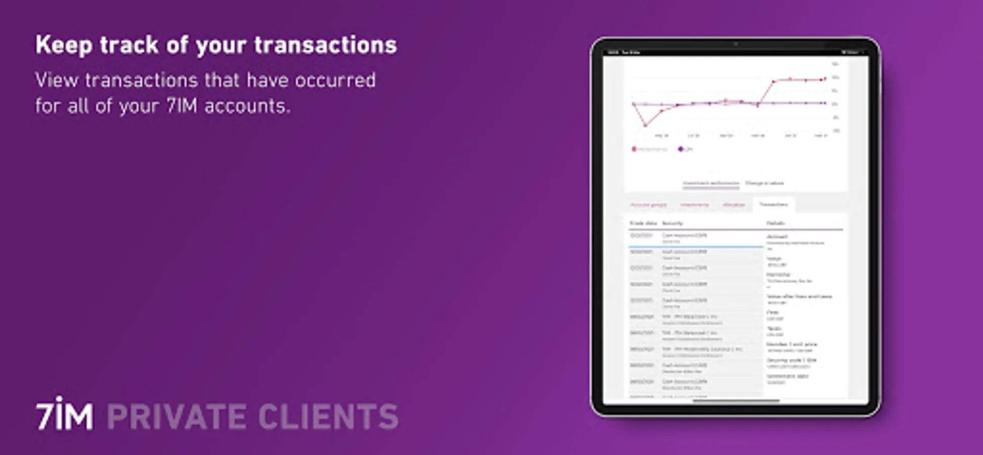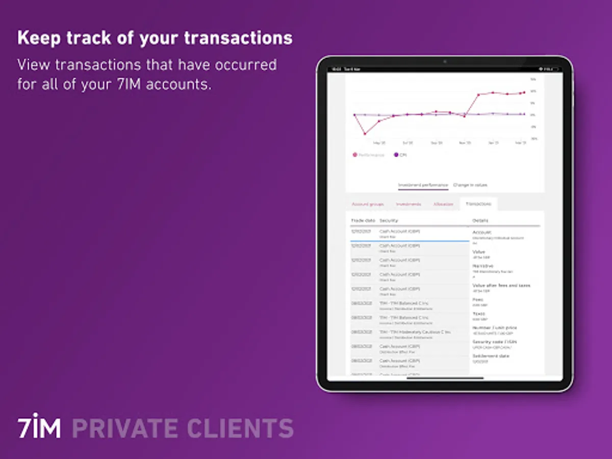 - View your valuation, transaction history, investment performance and compare it to pre-configured benchmarks.