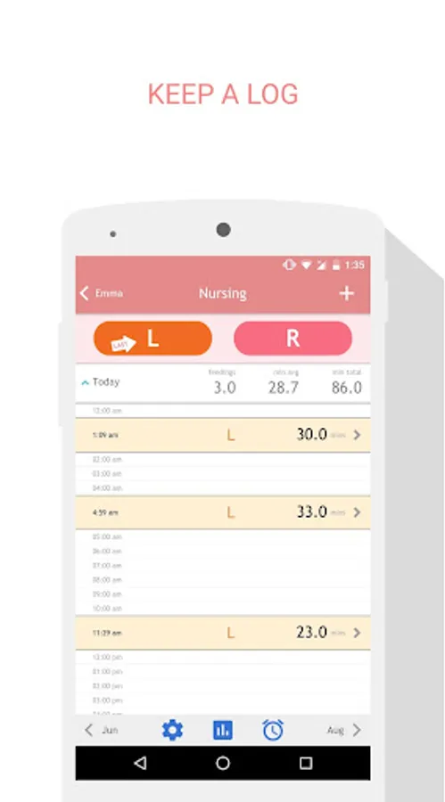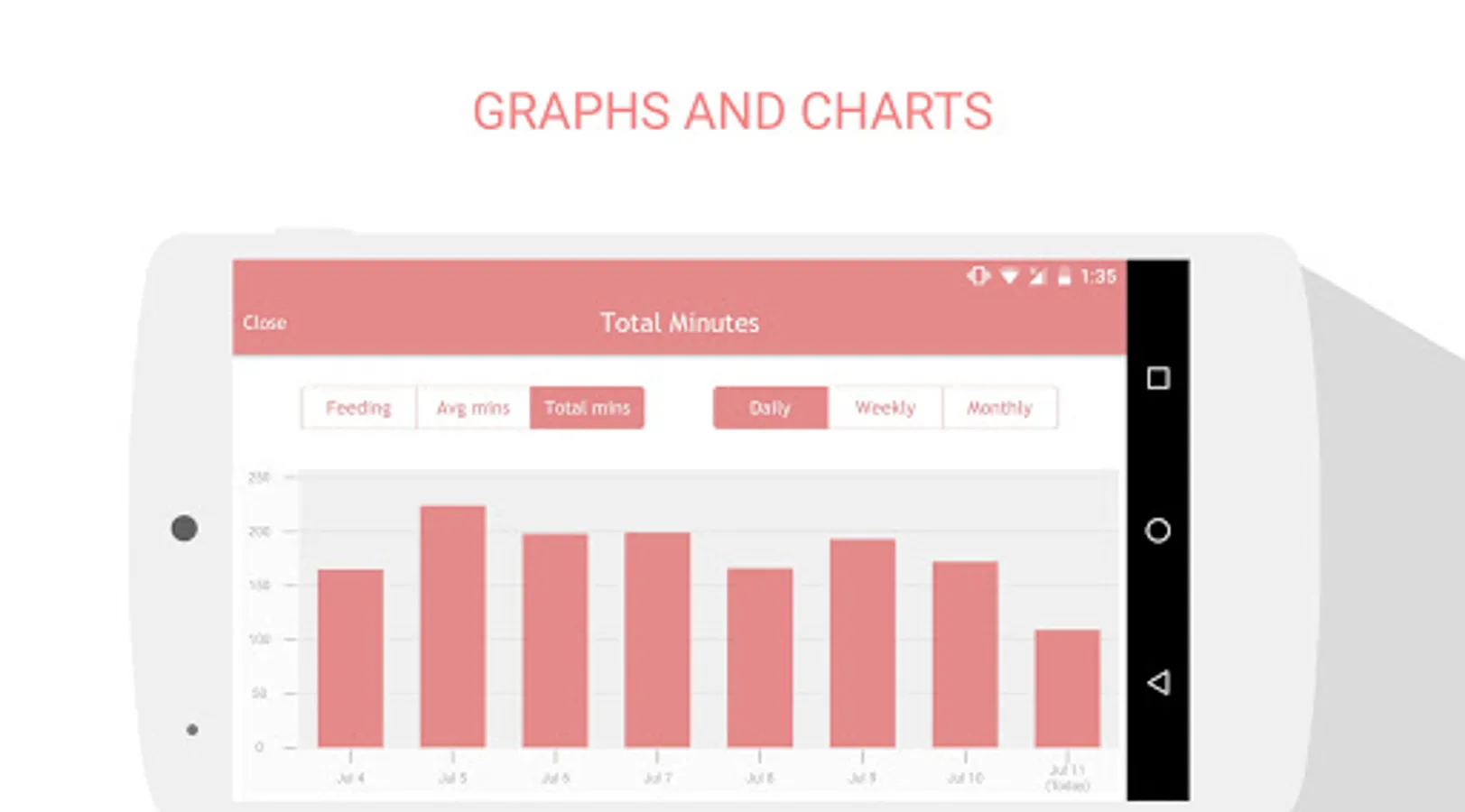 • See detailed and useful info on your nursing progress: most recent nursing, daily averages, cumulative totals, and graphs. We even help you calculate how much you’ve fed your baby!