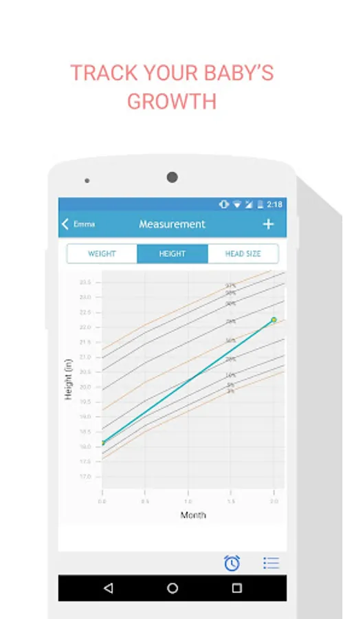 • Record your baby’s height, weight, and head size, then see them all on our comprehensive growth chart.