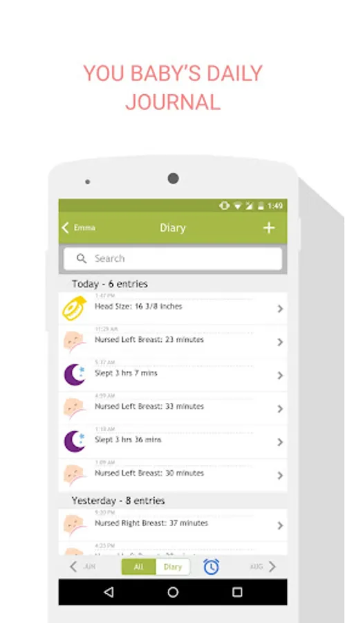 Baby Nursing, the easy-to-use app that helps you track your baby’s nursing progress, growth, diaper changes, doctor’s visits, and more. Just some of what you’ll get in this FREE app: