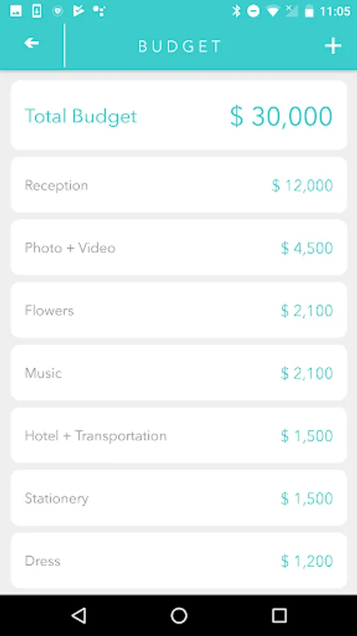 • Budget: Set a budget and get an estimate of how much to spend on each expense.