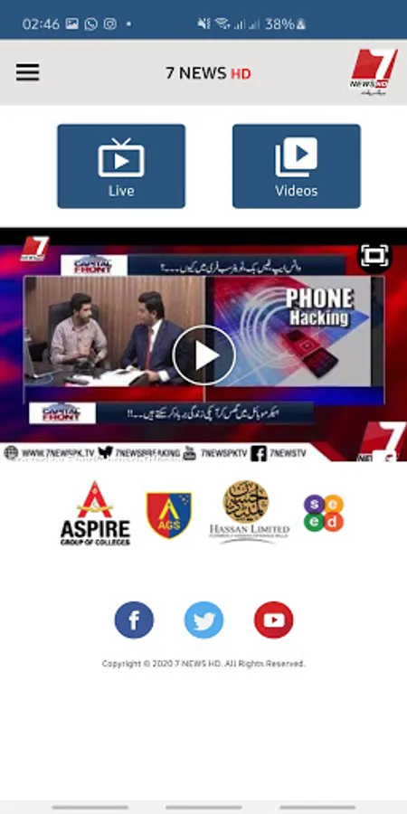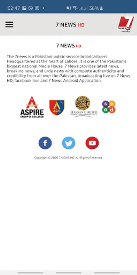 7news is a Pakistani public service broadcaster. Headquartered at the heart of Lahore, it is one of Pakistan’s biggest national Media House. 7 News provides the latest news, breaking news, and Urdu news with complete authenticity and credibility from all over Pakistan, broadcasting live on 7 News HD, Facebook live and 7 News Android Application.
