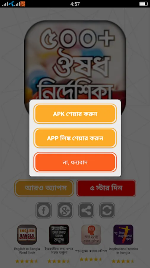 আশা করি এই ঔষধ নির্দেশিকা অ্যাপটিতে আপনি ইতোমধ্য সকল পেয়ে গেছেন । অ্যাপটি ভাল লাগলে আপনার বন্ধুদের সাথে শেয়ার করুন আর কোন মতামত থাকলে আমাদেরকে ই-মেইল করে জানিয়ে দিন । আর হাঁ ভাল লাগলে অবশ্যই ৫ স্টার দিতে ভুলবেন না কিন্তু ।