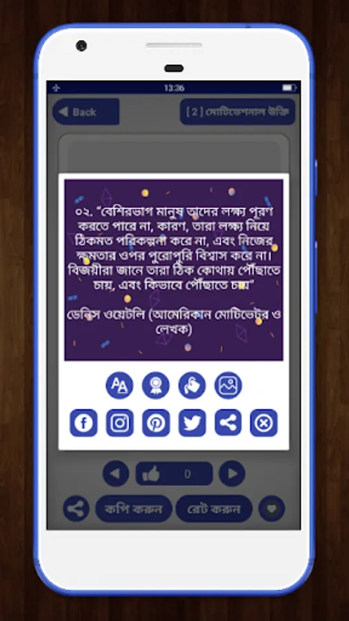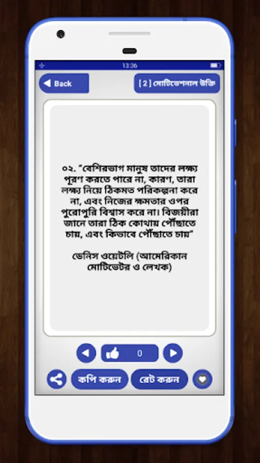 If you like our Motivational quotes in bangla- অনুপ্রেরণামূলক উক্তি app then rate us with 5 star and share it with your friends . Also if you have any feedback then you can send an email . we always appreciate our users' feedback .
