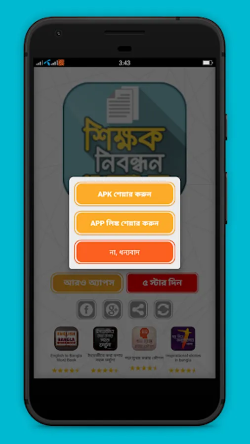 আশা করি শিক্ষক নিবন্ধন প্রশ্ন ব্যাংক অ্যাপটি আপনাদের ভাল লাগবে । অ্যাপটি ভাল লাগলে আপনার বন্ধুদের সাথে শেয়ার করুন আর কোন প্রশ্নে ভুল থাকলে আমাদেরকে ই-মেইল করে জানান আমরা সংশোধন করে নিব। আর হাঁ আমাদেরকে রিভিও করতে ভুলবেন না কিন্তু ।