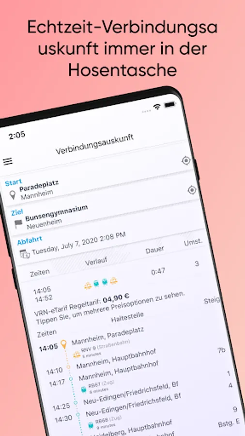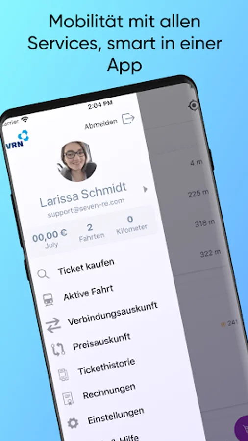 Register now for the eTarif and always pay exactly as much as you drove: www.vrn.de/luftlinie