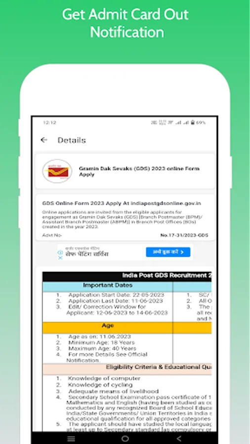 4. Admit Card Availability: Receive notifications about the release of admit cards for upcoming government exams, ensuring that you have all the necessary information for your examination.