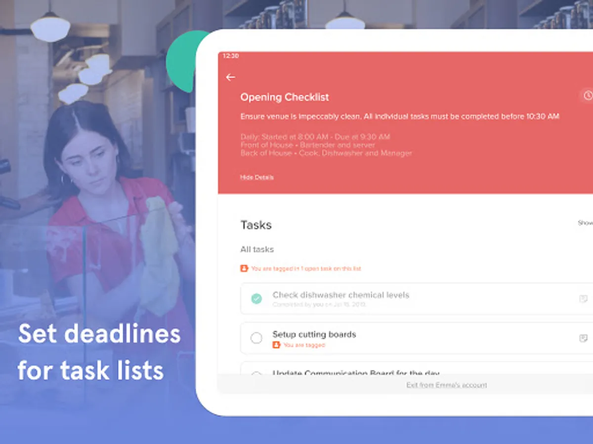 - Create custom task lists for your restaurant staff to stay on top of opening, closing, and cleaning duties.