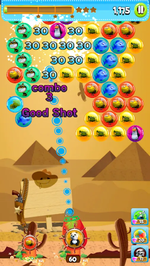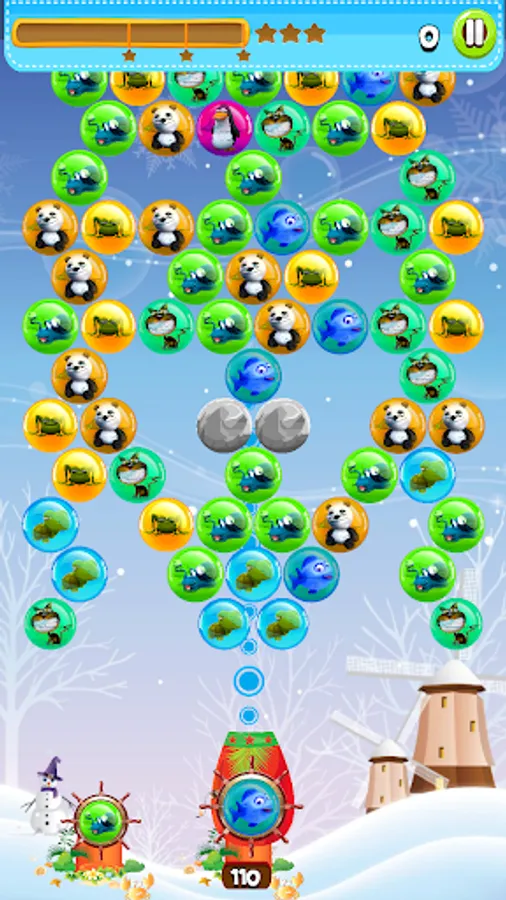 ball and group 3 or more bubbles to burst them. And get 3 stars in a level.