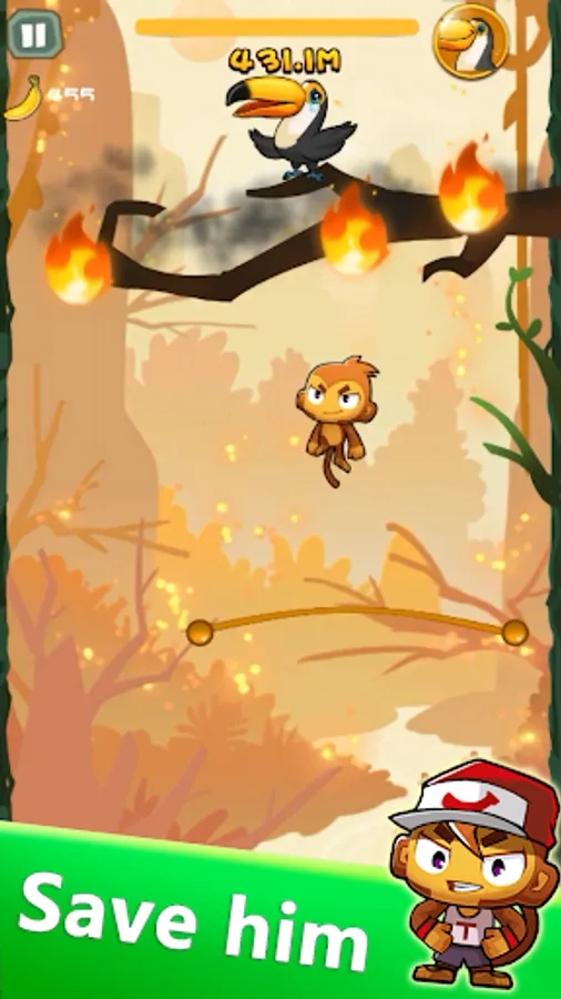 How to play:Slide your fingers to make a stretch rope, and use the elasticity to make the monkey jump higher.